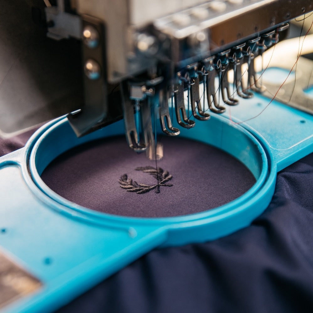 O bordado é definido pelo número de pontos necessários para reproduzir com precisão o formato do logótipo. Para isso, a arte é inicialmente convertida num ficheiro específico para bordados, que orienta a máquina na aplicação do desenho diretamente no tecido.