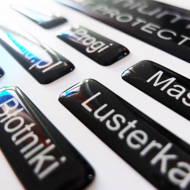 Este processo está diretamente ligado à impressão digital, onde o design é impresso sobre uma película autocolante. Em seguida, é aplicada uma camada de resina transparente que, ao ser aquecida, endurece e forma uma superfície sólida.