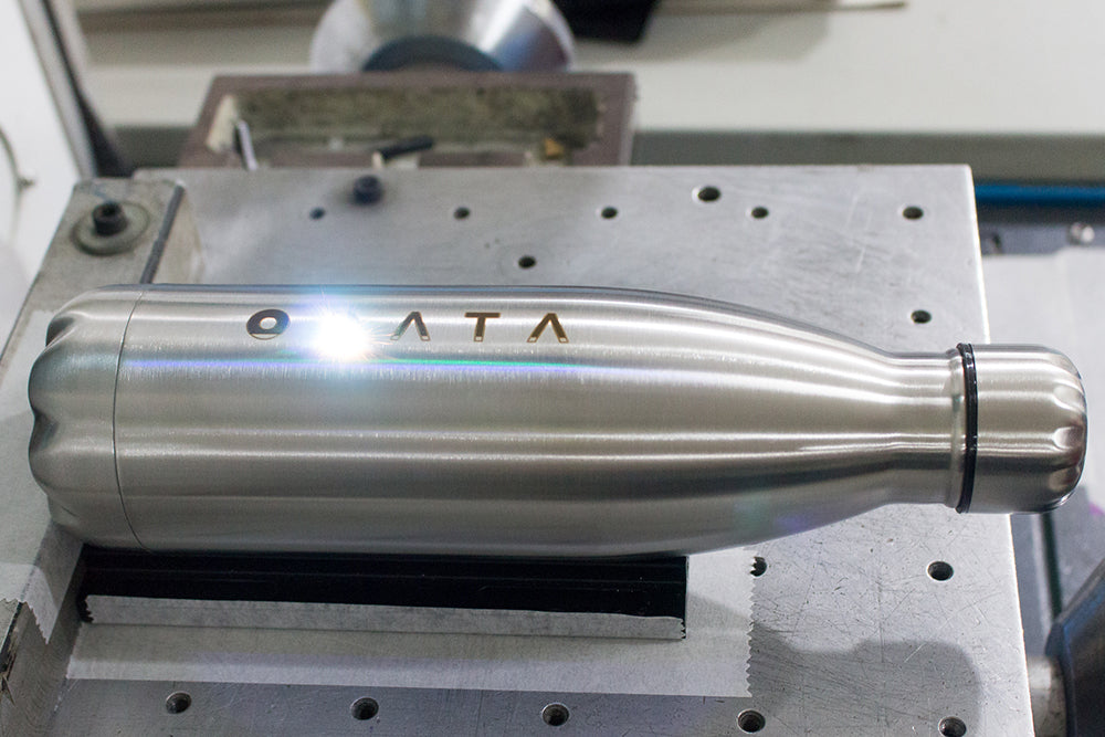 A gravação a laser permite marcar logótipos ou elementos gráficos diretamente em diversos materiais como metal, madeira, vidro, acrílico, pele, entre outros, com uma profundidade máxima de 2 mm. O feixe laser atua sobre a superfície, criando uma personalização duradoura, precisa e elegante, sem recorrer a tintas ou cores — o tom resultante depende unicamente da composição e cor interna do material.